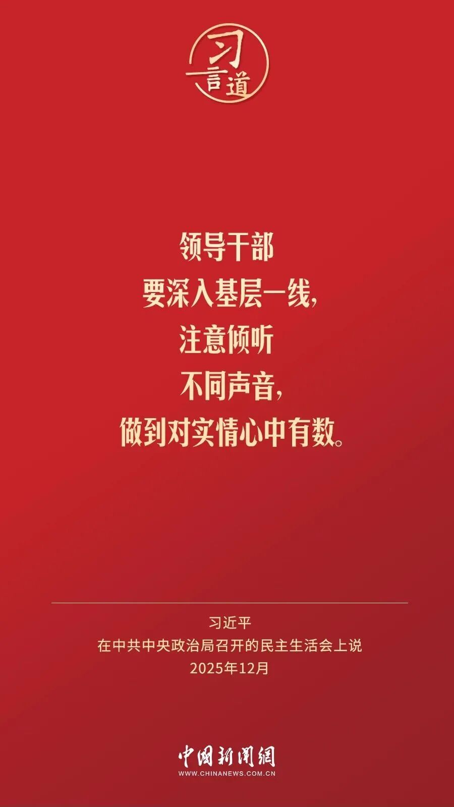 12月25日至26日,中共中央政治局召开民主生活会,中共中央总书记习近平主持会议并发表重要讲话。习近平强调——